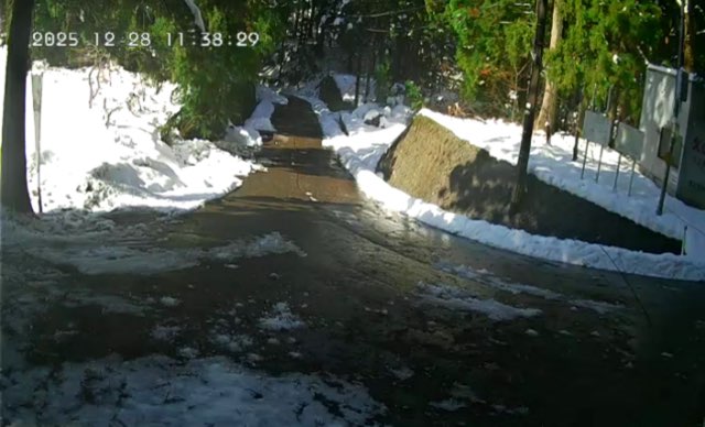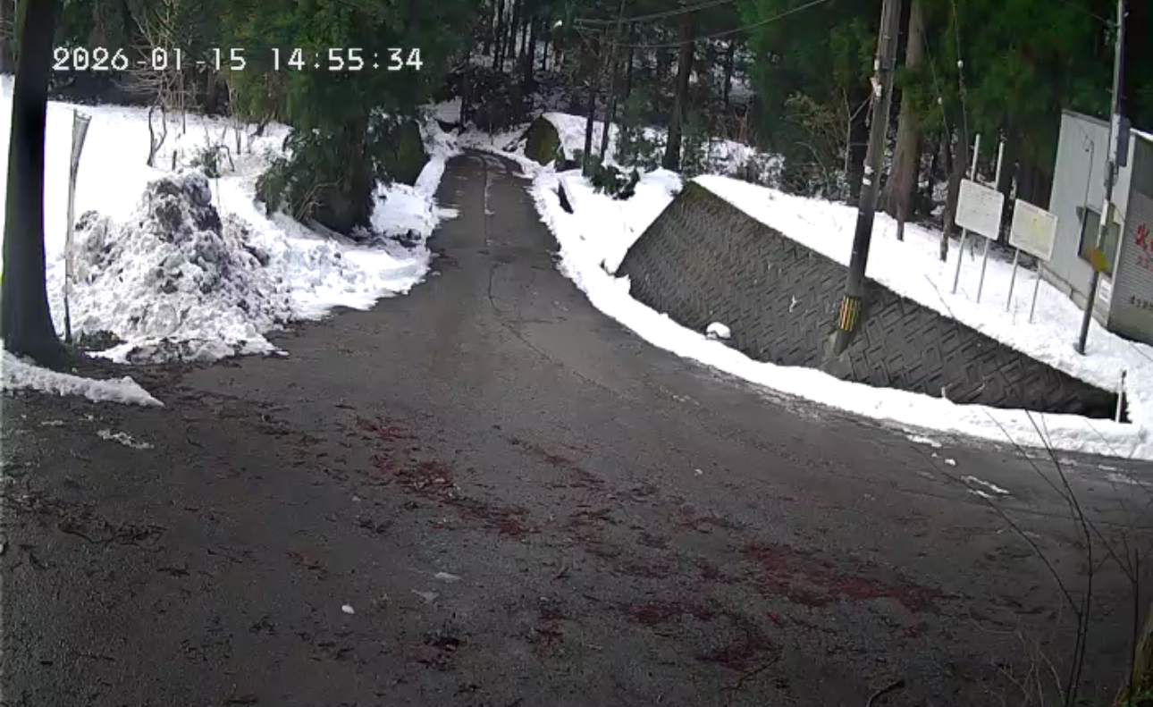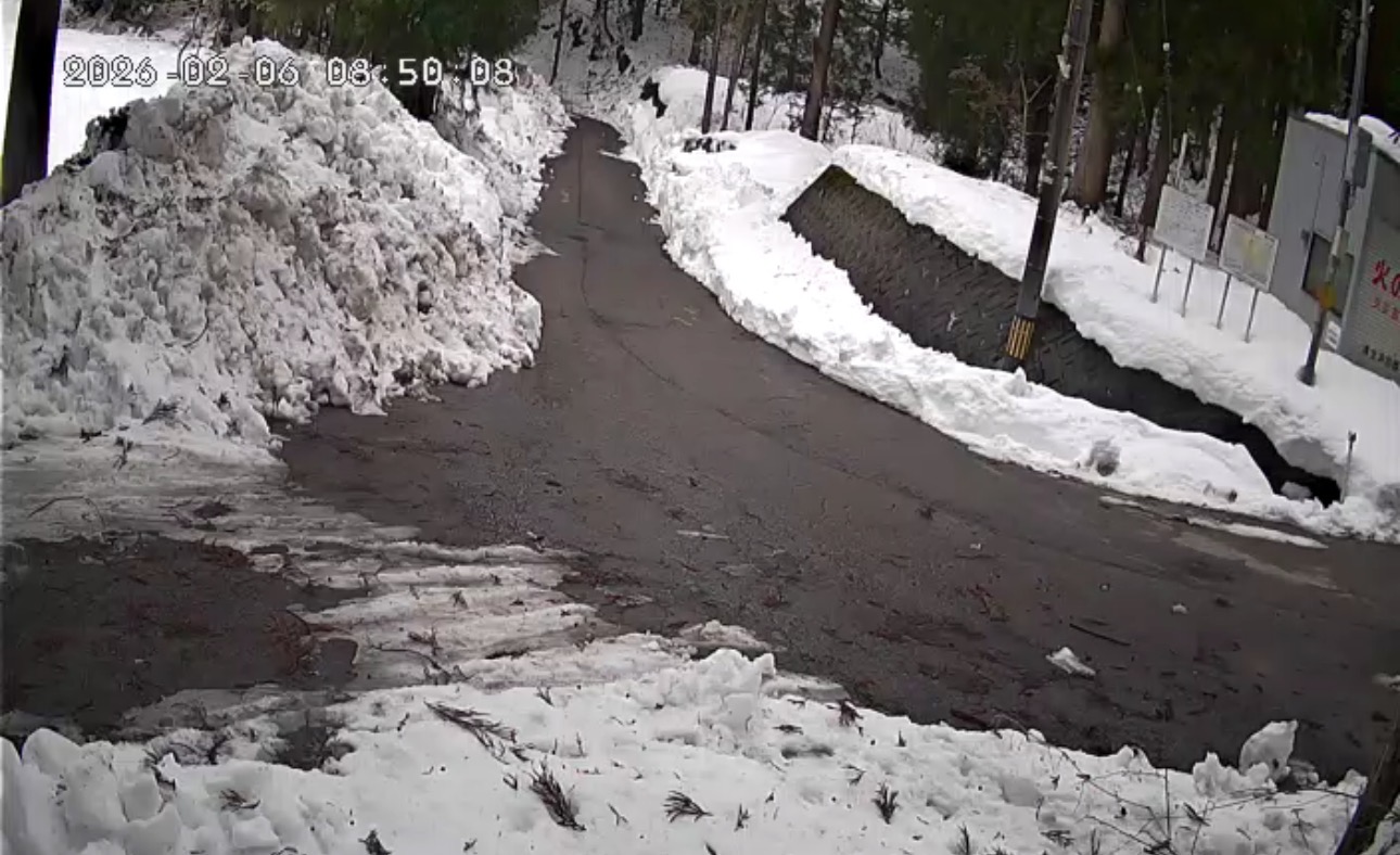 大岩から1.2kmの間、道路に大量の水を流す降雪装置があります。気温の低下と降雪により自動的に動作します。天候をよく確認されて下さい。