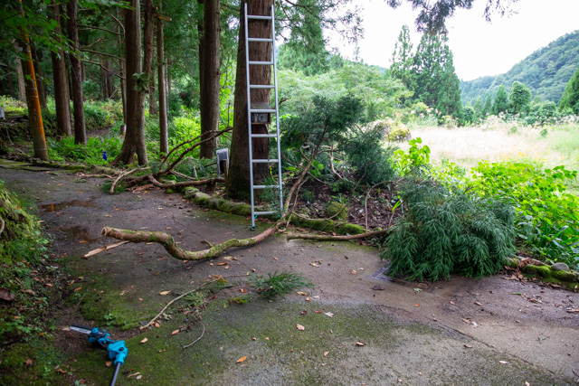 木の枝って案外高い所にあるので、ハシゴも使って届くだけ切ります。