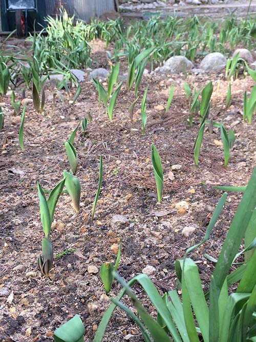 今年は春の気温が高めなので、延びるのが早いかも。クロッカスとか、もうつぼみが (=´∀`)